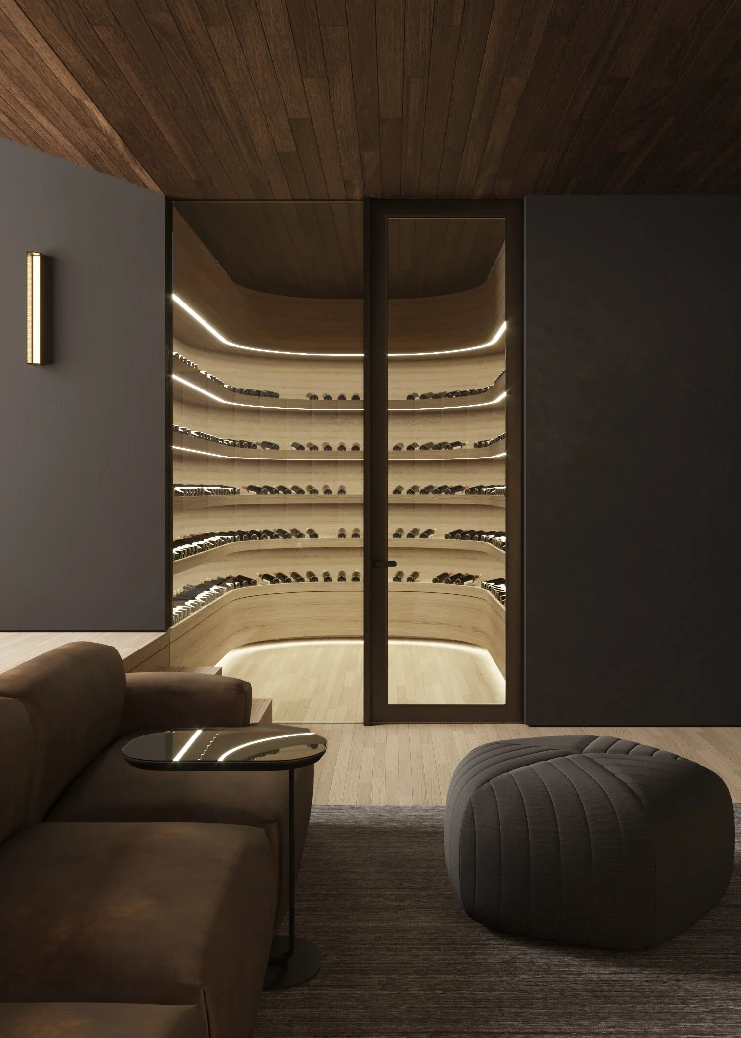 A circuit about the core from bottom to top also links occupants to discrete levels of exterior program: a private sunken courtyard, a multileveled pool and guest area, an expansive second floor roof deck, an elevated exterior media room, and a semiprivate rooftop garden with a sloped sod roof completing the circuit back to grade.