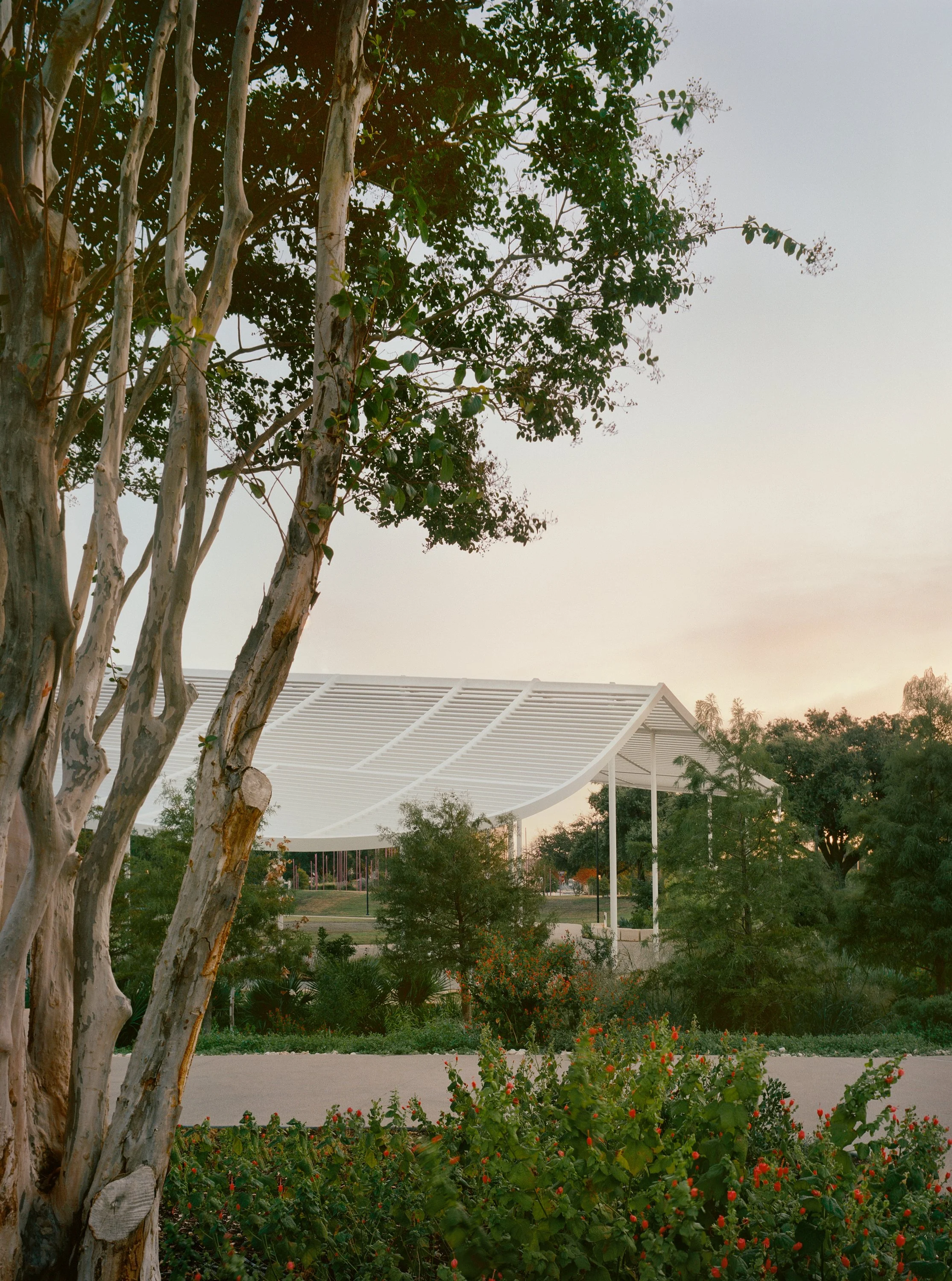 To provide relief from the hot Texas sun, each louver rotates 2.5° across the width of the pavilion, creating a gradient of light and shadow throughout the day where a solid portion of shade is always present.